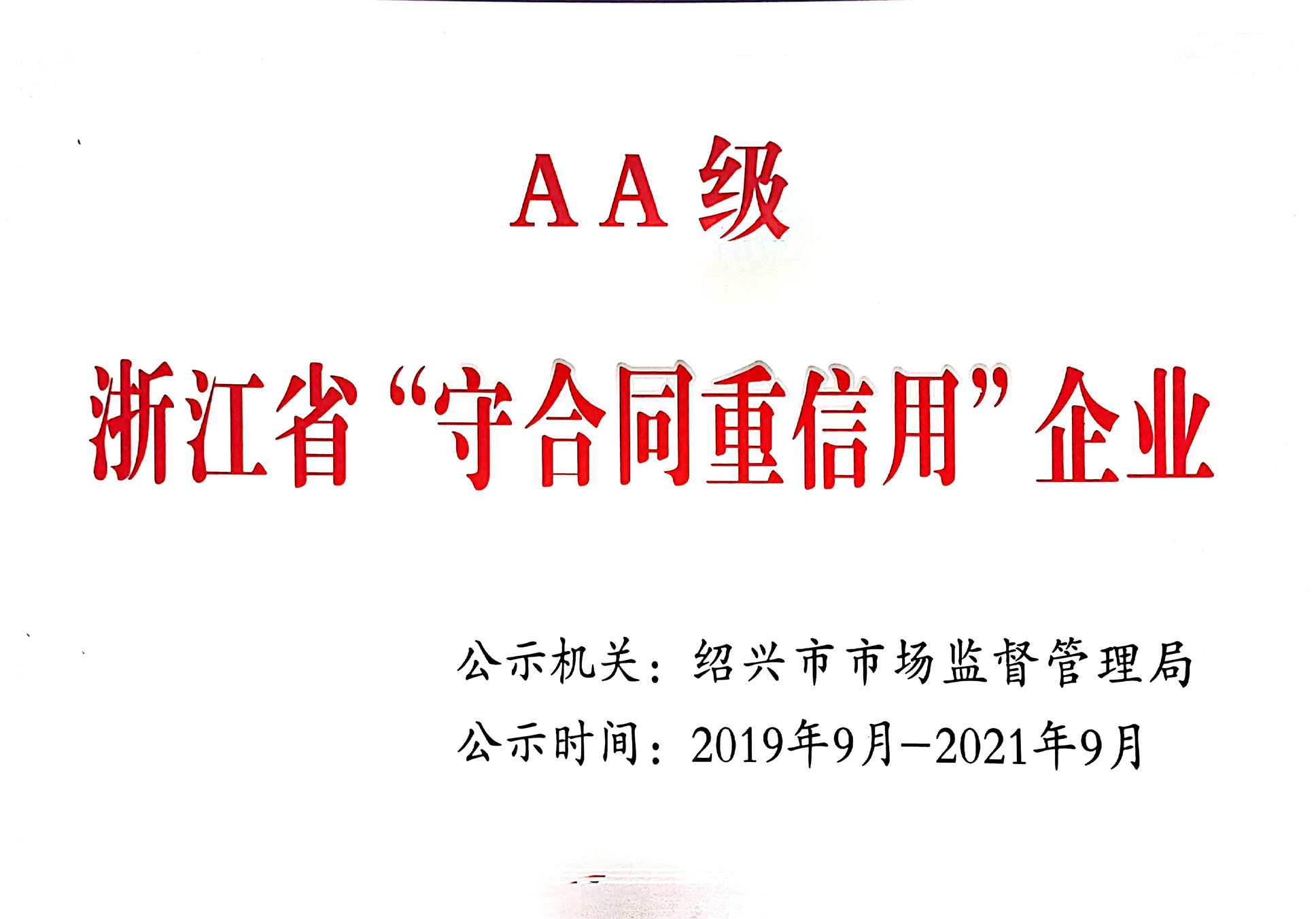 Podnik provincie Zhejiang na úrovni AA „Dodržiavanie zmlúv a udržiavanie úverov“.